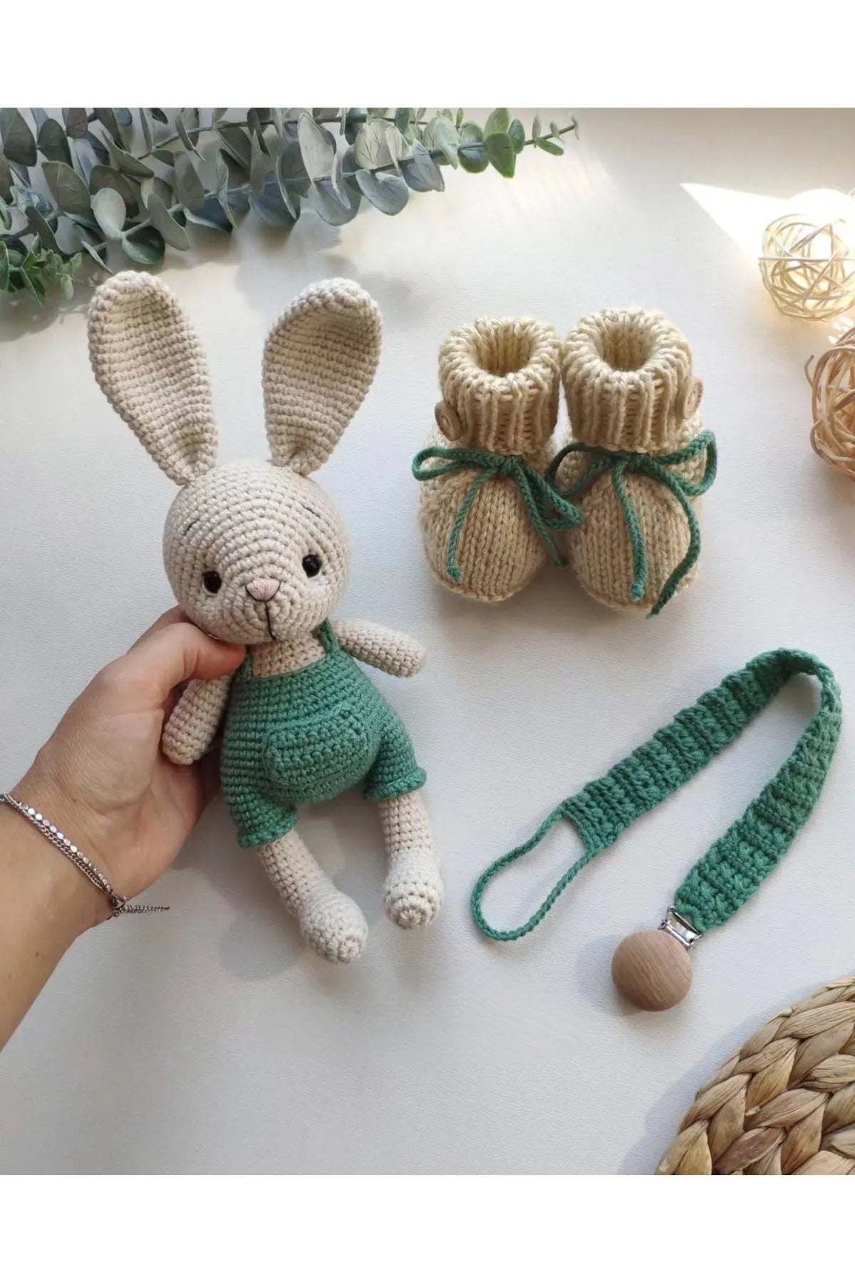 Crochet Bunny Toy and Baby Shoes Set 3pc