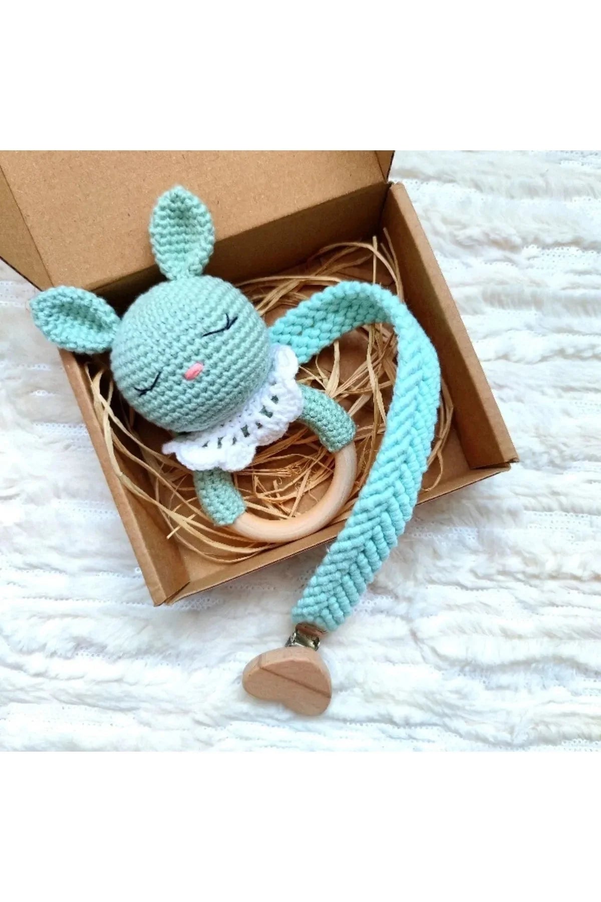 Crochet Cute Bunny Rattle and Dummy Clip Gift Set 2pc