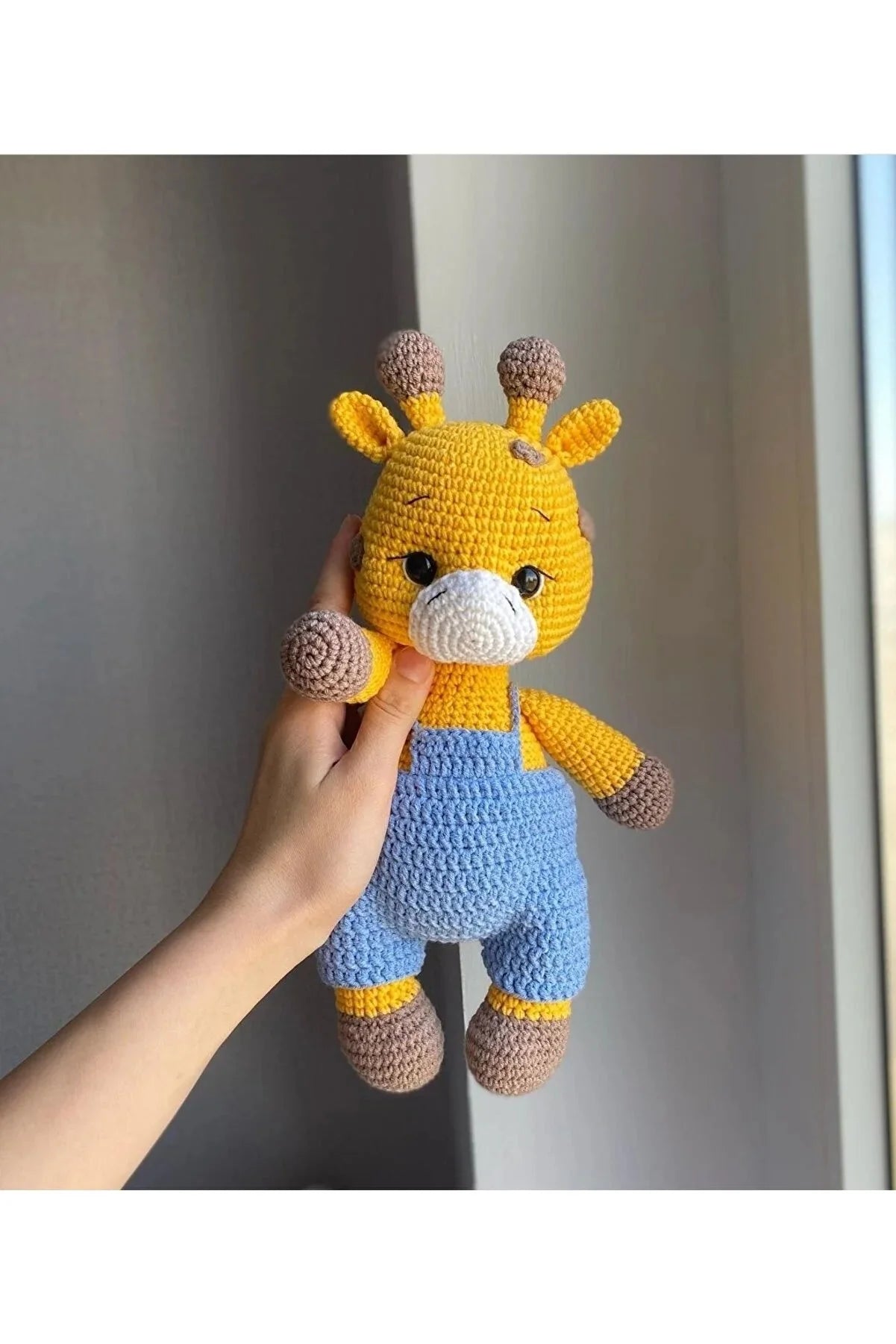This adorable crocheted giraffe will hop into your heart with its playful blue jumpsuit! Made with love and precision, this quirky toy is a must-have for any animal lover. Perfect for snuggling or displaying, it's the perfect blend of charm and cuteness.