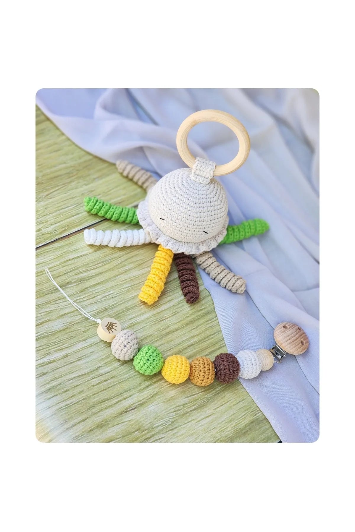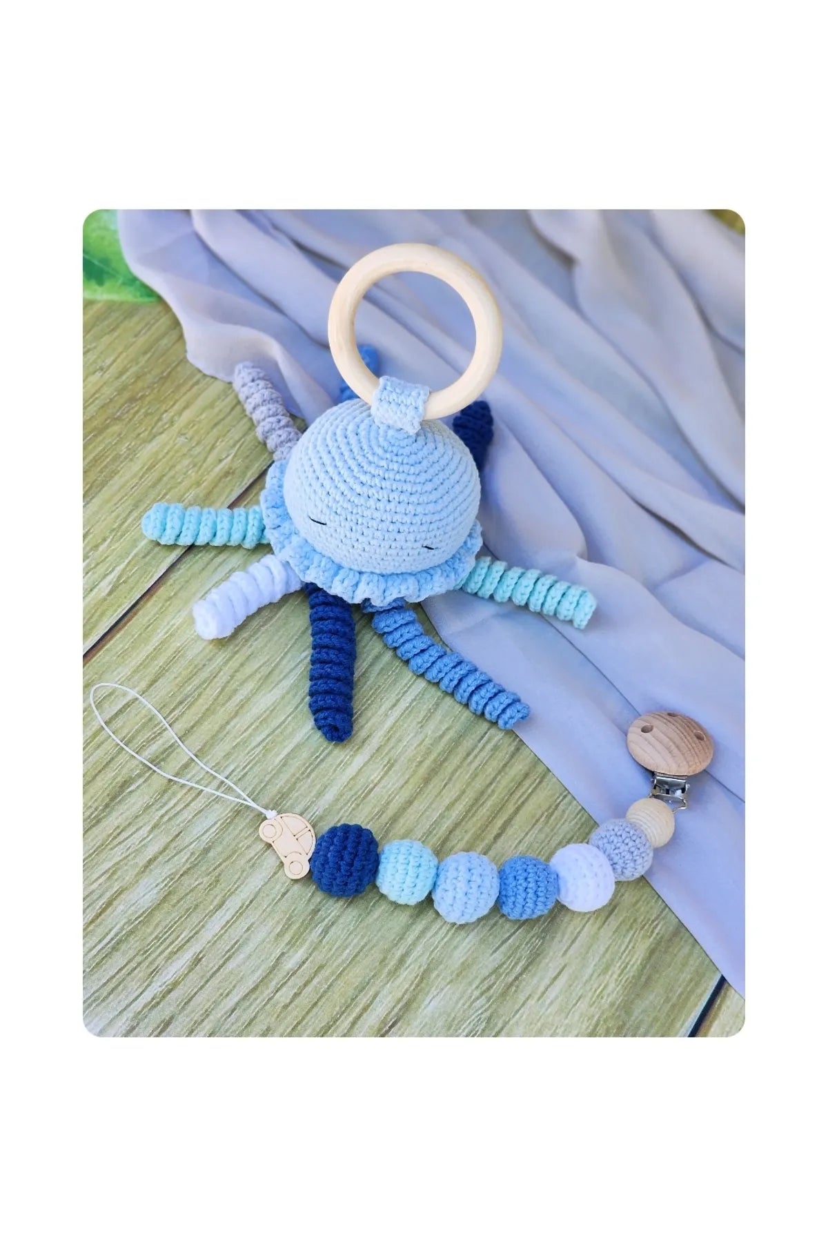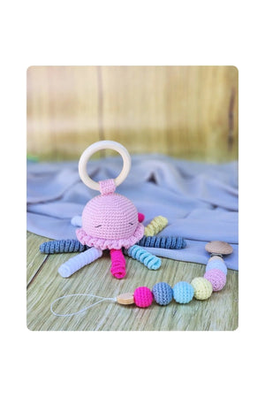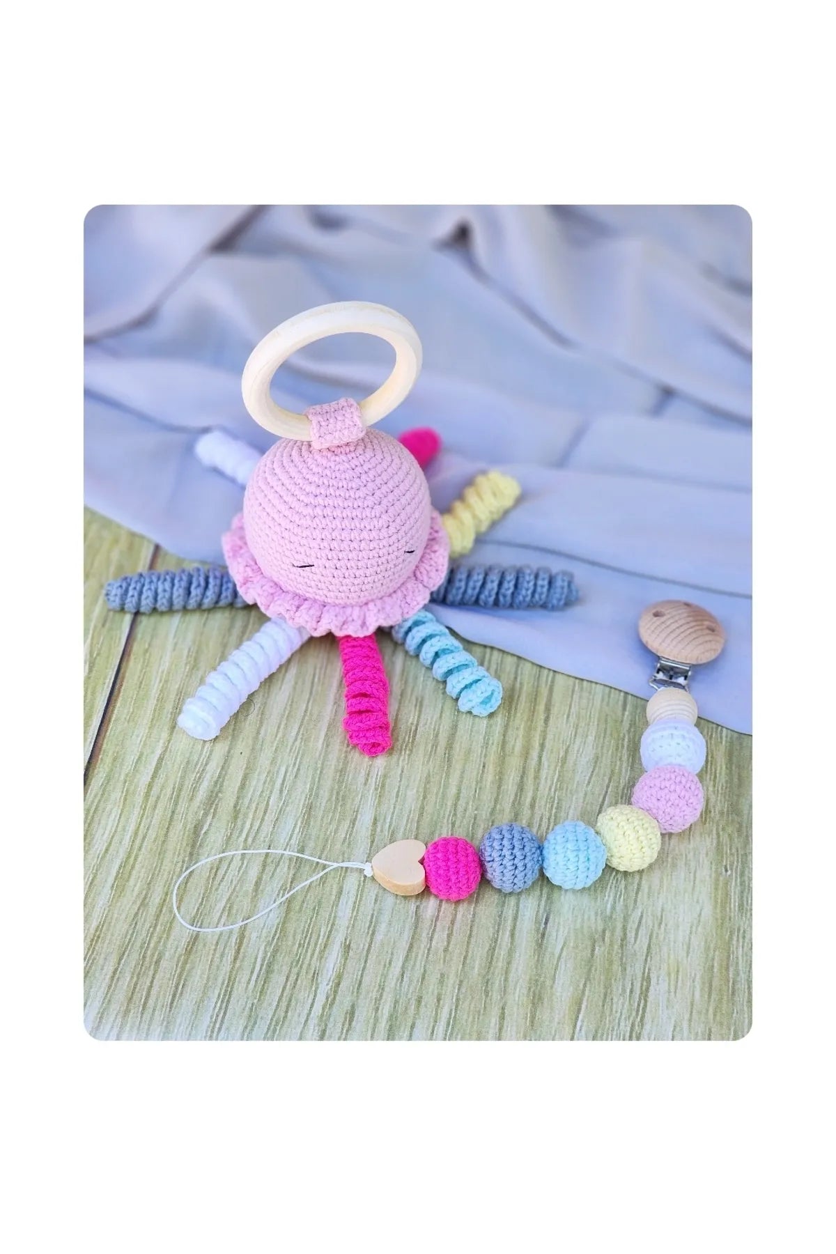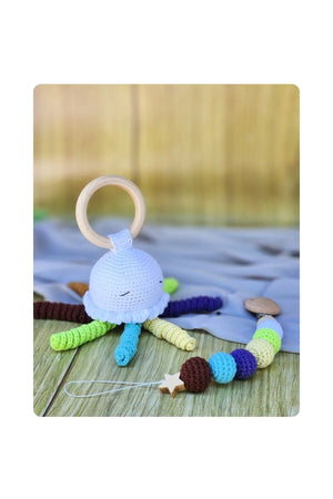 Crochet Cute Jellyfish Rattle and Dummy Clip Gift Set 2pc