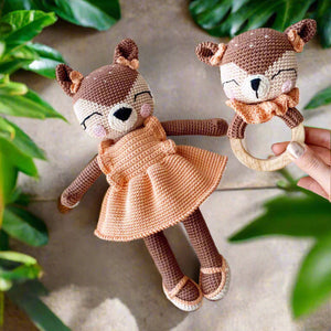 Crochet Cute Reindeer Girl Toy and Rattle Toy Gift Set 2pc
