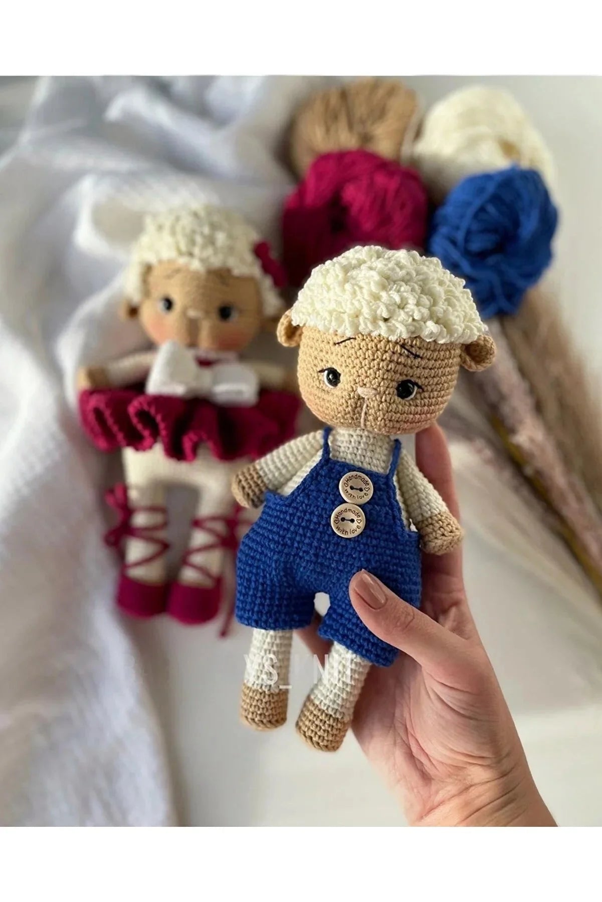 Meet this adorable Crochet Cute Sheep Boy in Blue Jumpsuit Toy! This handmade toy is crafted with love and care, creating a soft and cuddly friend for any child. Let their imagination run wild with this playful and quirky sheep toy. Perfect for snuggles and playtime!