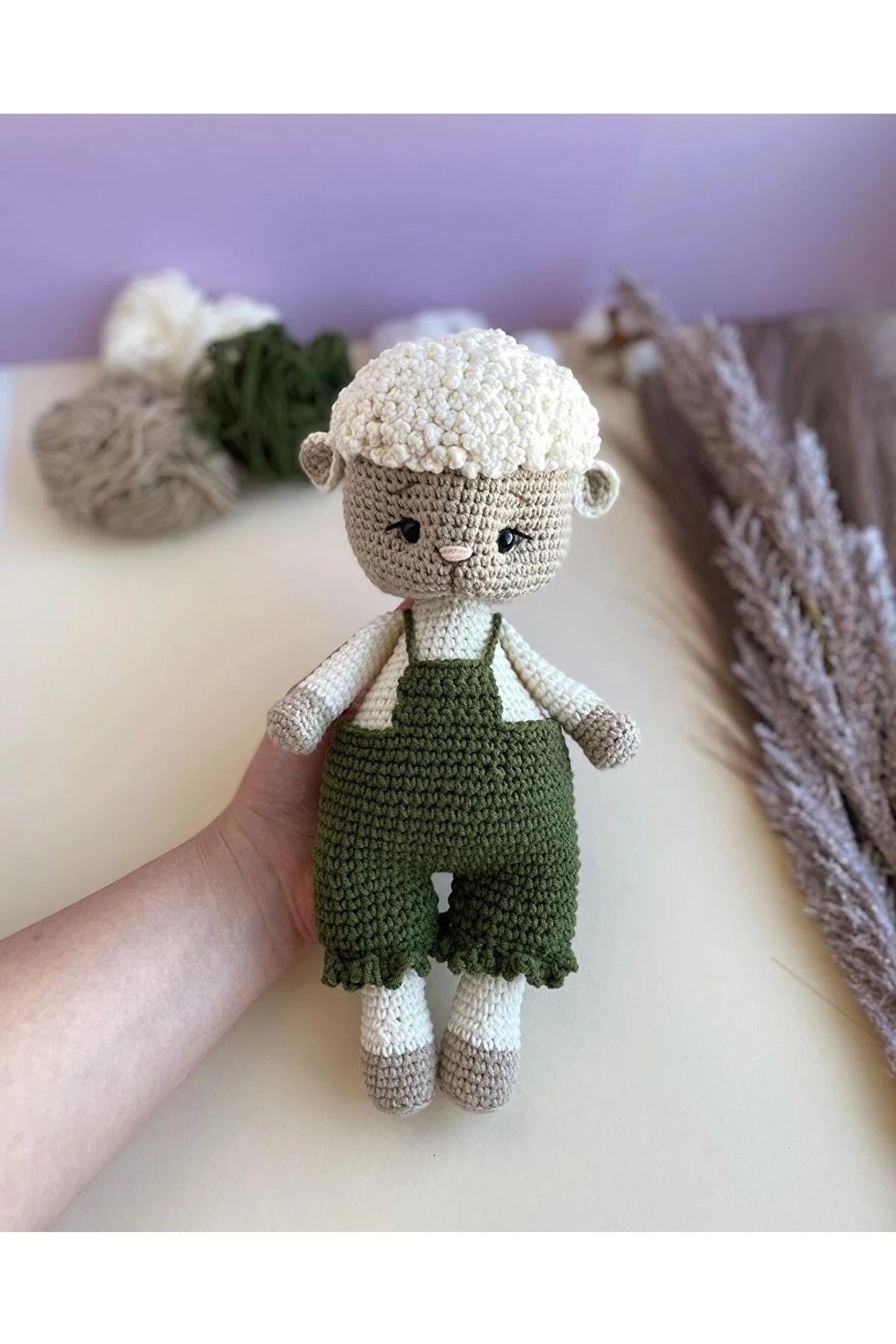 Introducing the Crochet Cute Sheep Girl Toy - the perfect companion for all your adventures! This adorable toy is handmade and features a green jumpsuit for added cuteness. Its crocheted design adds a unique touch to any toy collection. Bring this little sheep home today and start creating fun memories!