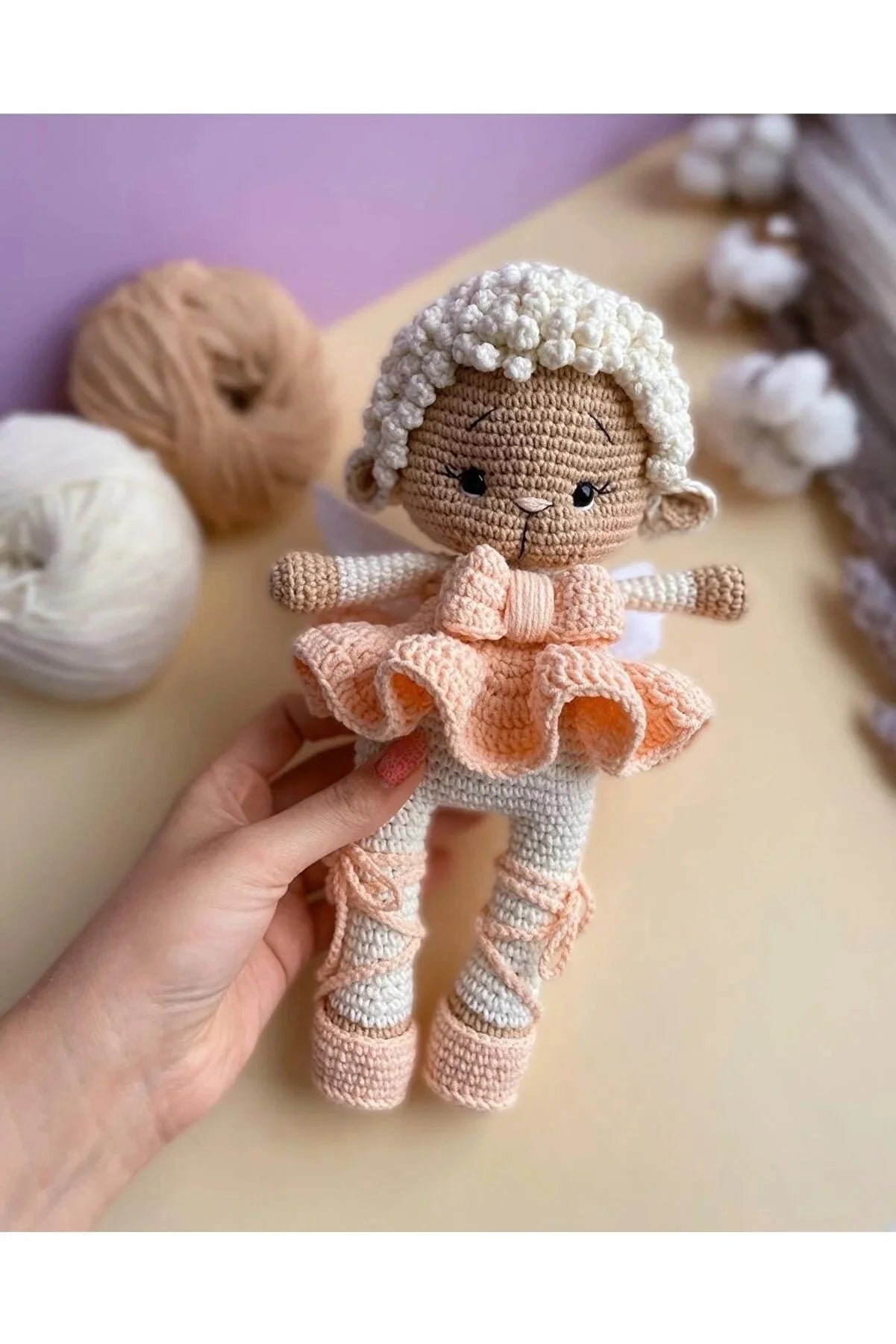 Meet our adorable Crochet Sheep Girl Toy! She's dressed in a light pink dress, ready to snuggle and play. Handcrafted with love, this quirky cutie will bring joy to any little one's day. Perfect for imaginative play and cuddles, this toy is sure to be a beloved addition to any collection.