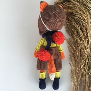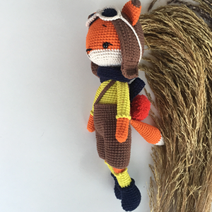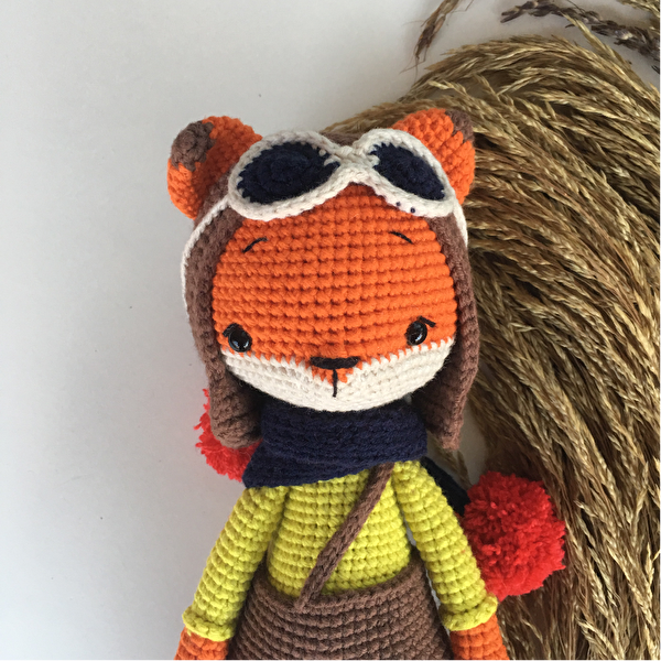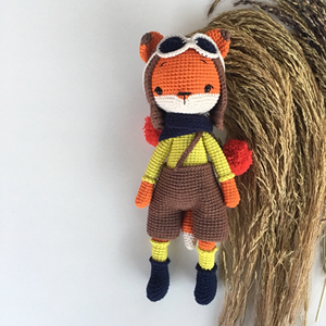 Introducing our Crochet Pilot Fox Boy Toy: a playful and quirky addition to any child's collection! This handmade 32cm toy features a charming crochet design and serves as the perfect companion for any adventure. Let your child's imagination take flight with this one-of-a-kind fox toy!