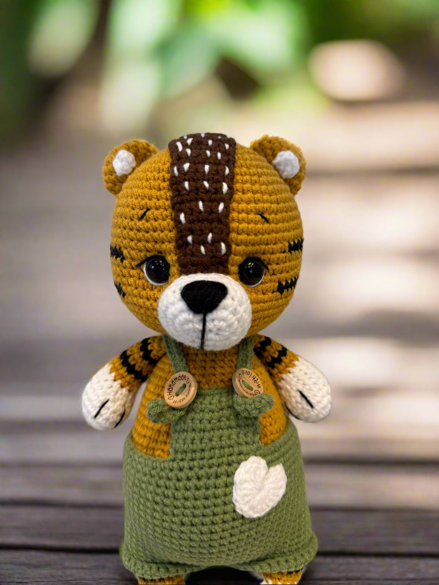 Roar into playtime with the adorable Crochet Tiger Boy Toy! Handcrafted with love, this cute and quirky toy is sure to become your little one's favorite companion. Made with soft, high-quality yarn, it's perfect for cuddling and imaginative play. Let your child's creativity and imagination run wild with this unique and playful toy!