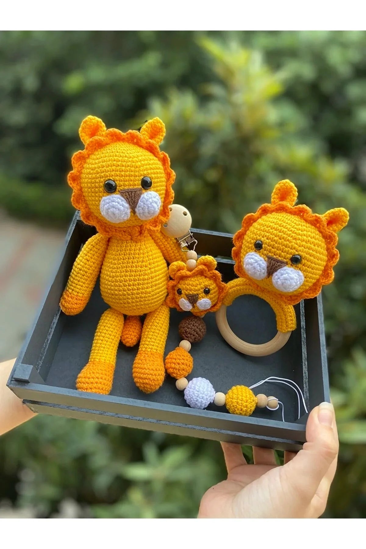 Crochet Toy Gift Set Yellow Lion 3pc