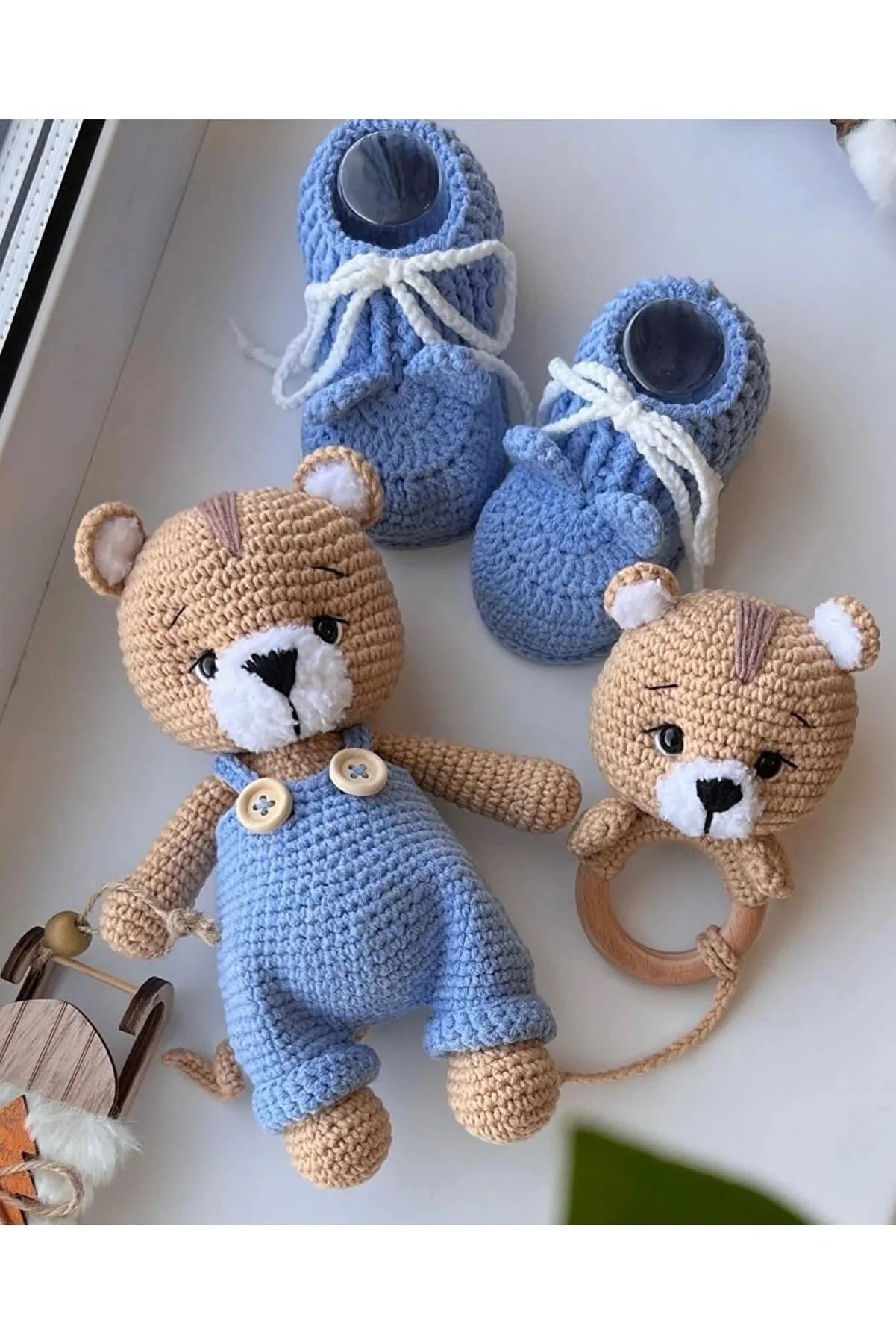 This beautifully handcrafted crochet toy set is the perfect gift for newborns and baby showers. Made from 100% certified organic cotton yarn, each piece is soft, safe, and gentle on your baby’s skin. The adorable bee design adds a touch of charm and joy to everyday baby essentials.
