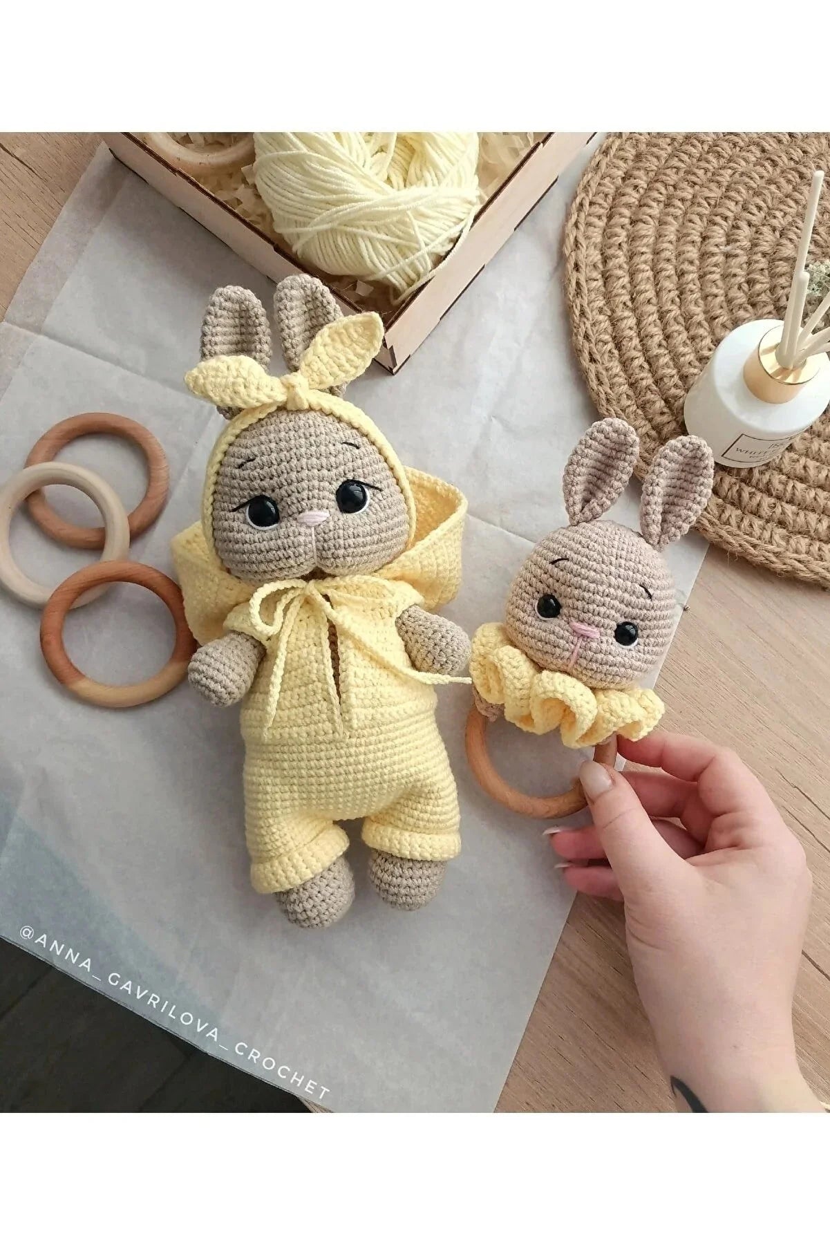 Handmade Crochet Bunny in Yellow Dress Toy Gift Set (2pc)