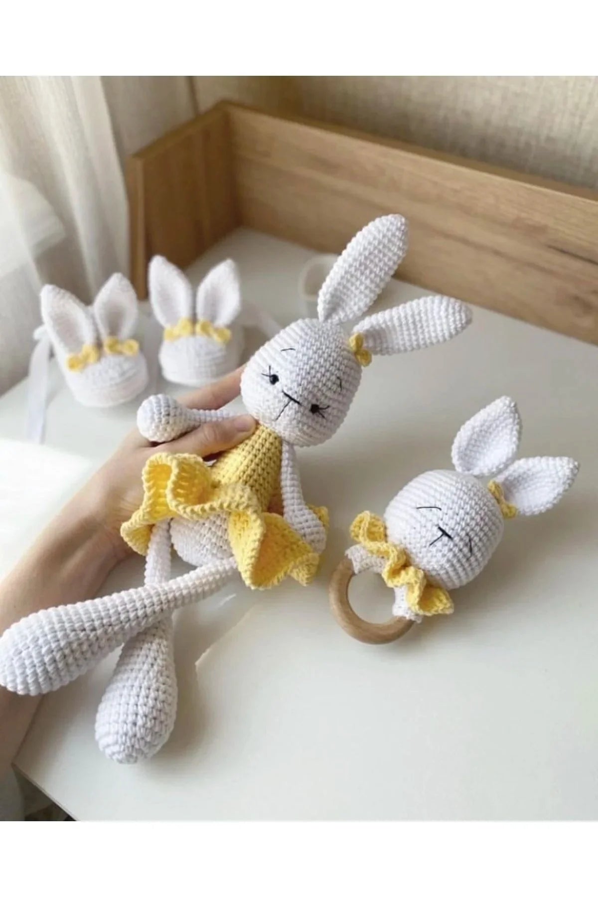 Handmade Crochet Bunny in Yellow Dress Toy Gift Set (3pc)