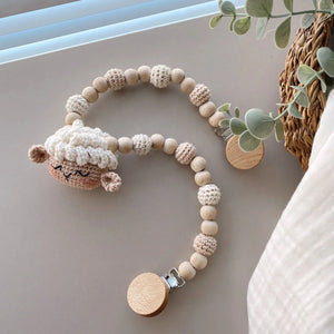 Handmade Crochet Cute Sheep Toy Gift Set (4pc) - Pram Toy Clip, Dummy Clip, Sleeping Mate