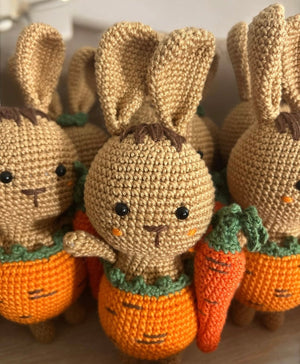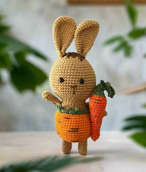 Hop into spring with this handmade crochet Easter Bunny and Carrot set! Perfect for kids and babies, this cute and unique gift is sure to bring a smile to their face. Made with love and a touch of whimsy, this bunny and carrot duo will add a playful touch to any Easter celebration.