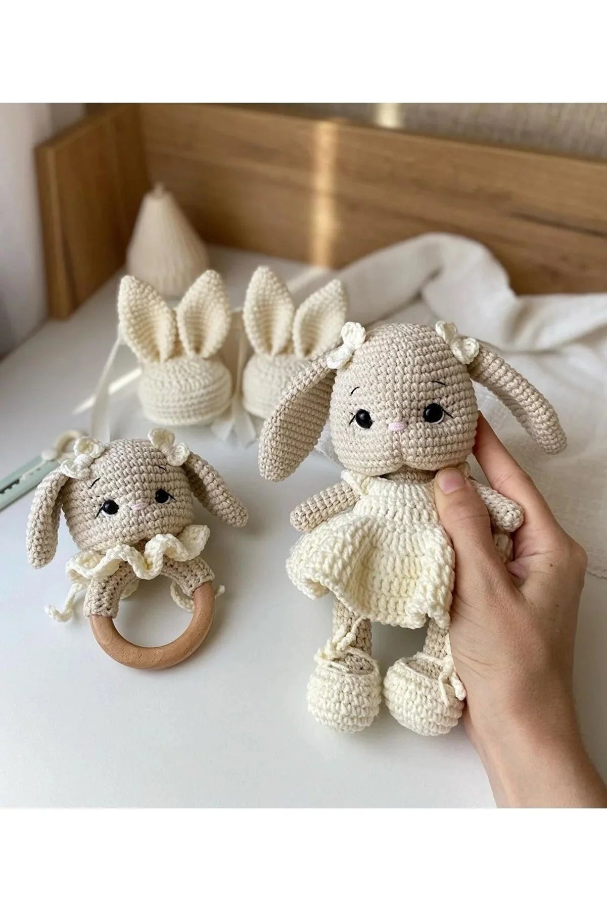 Handmade Crochet Long Ear Bunny Toy Gift Set (3pc)