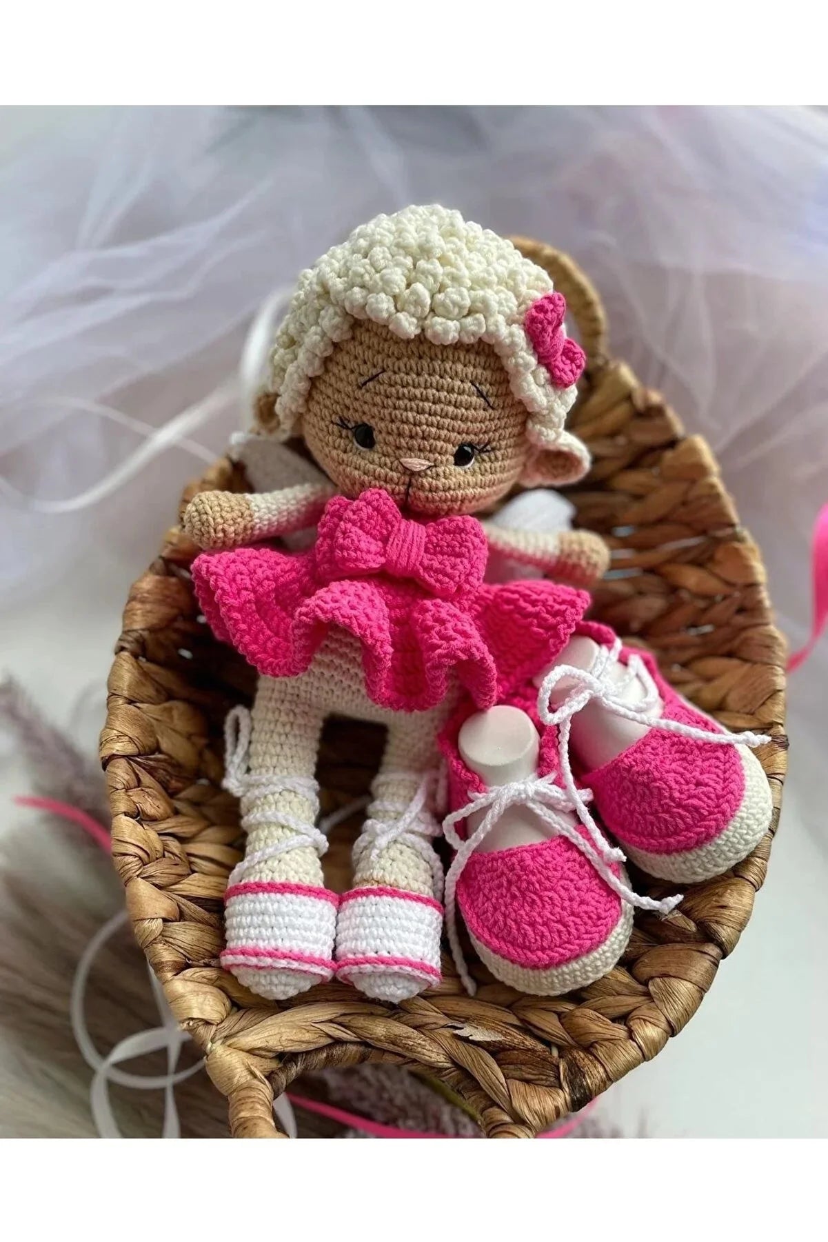 Handmade Crochet Sheep in Pink Dress Toy Gift Set (2pc)