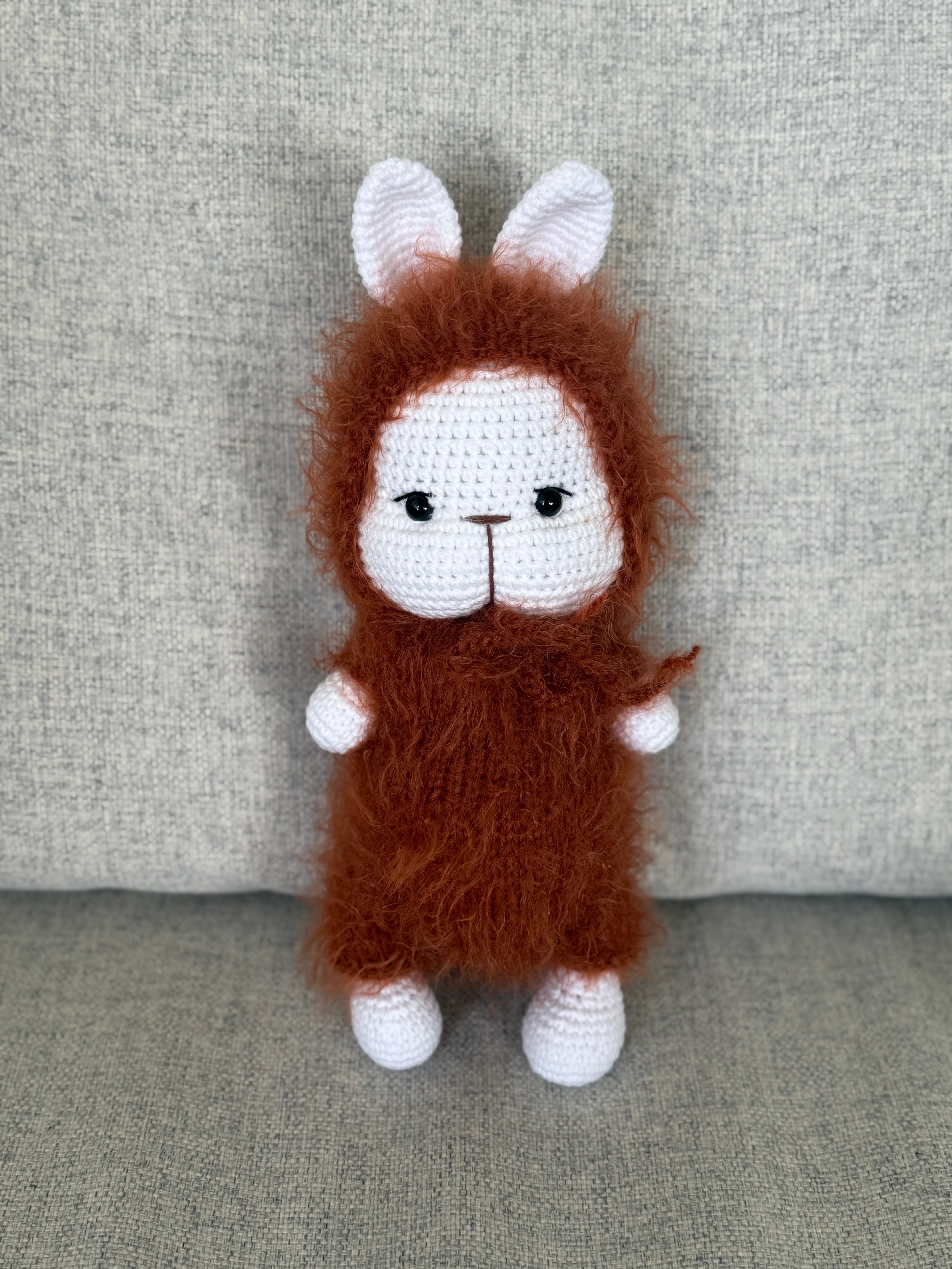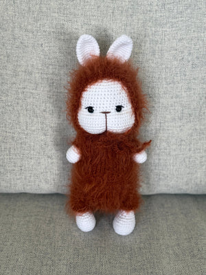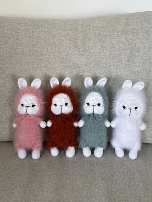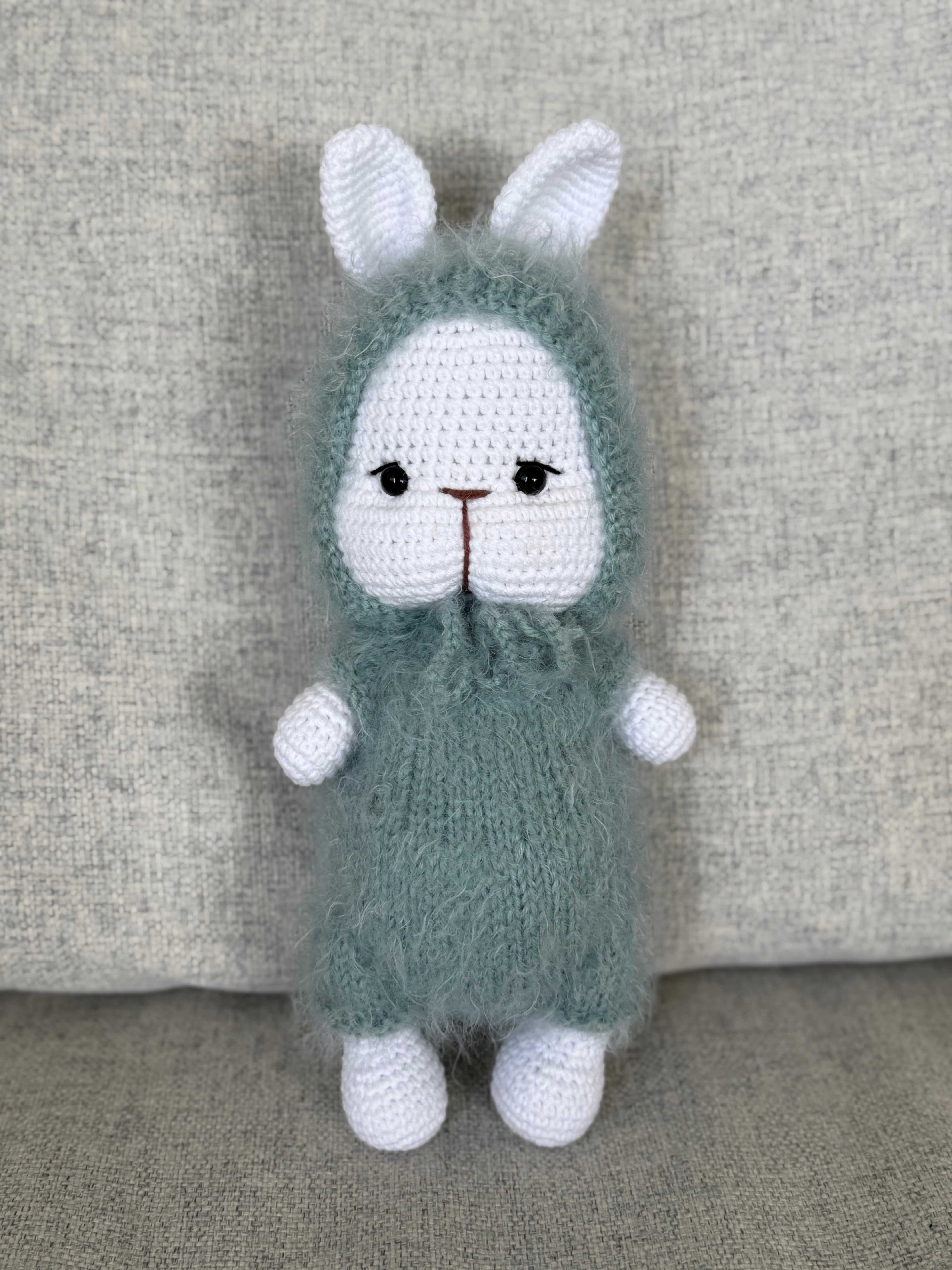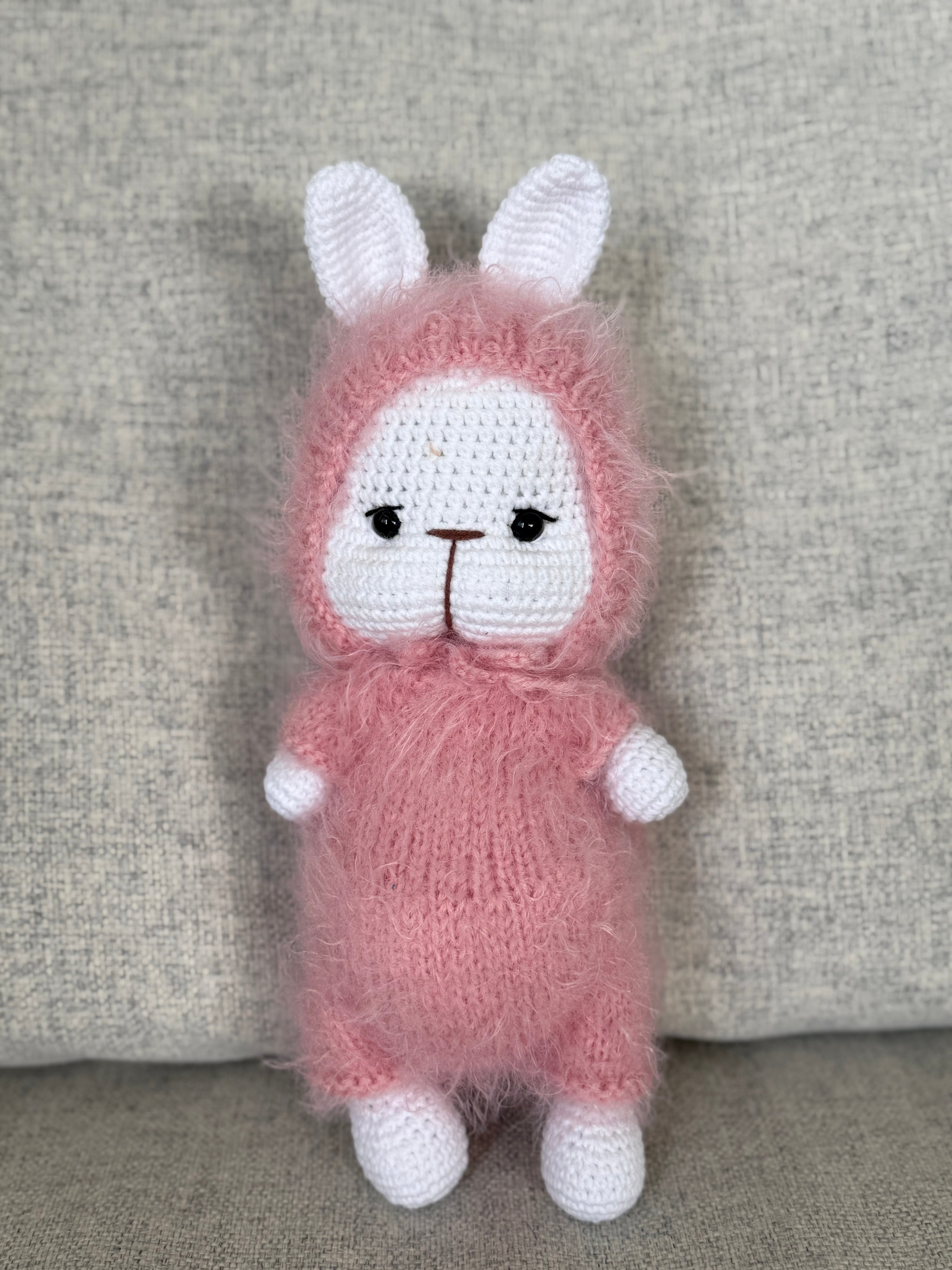 This adorable handmade crochet bunny is a perfect gift for all ages! Made with love and attention to detail, this bunny is sure to become a beloved companion for anyone who receives it. Its soft and cuddly design makes it a wonderful addition to any collection or the perfect playtime companion. Bring joy and comfort to someone's life with this adorable crochet bunny.